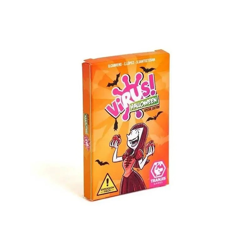 Virus! Halloween es una expansión del caótico juego de cartas Virus!, que añade cartas temáticas de Halloween como pócimas mágicas y efectos especiales para llevar la diversión al siguiente nivel. Entre risas y traiciones, lucharás por mantener tus órganos sanos mientras los virus disfrazados y las nuevas mecánicas convierten cada partida en un desfile de giros inesperados.