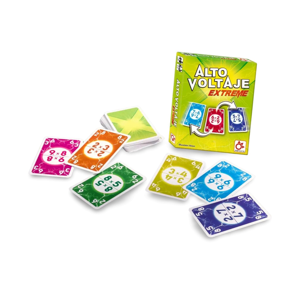 Alto Voltaje Extreme es un juego frenético de cálculo mental donde debes resolver multiplicaciones a toda velocidad para jugar tus cartas antes que los demás. Con su mezcla de tensión, caos y pura competencia numérica, cada partida es un torbellino de diversión donde los números nunca fueron tan divertidos.