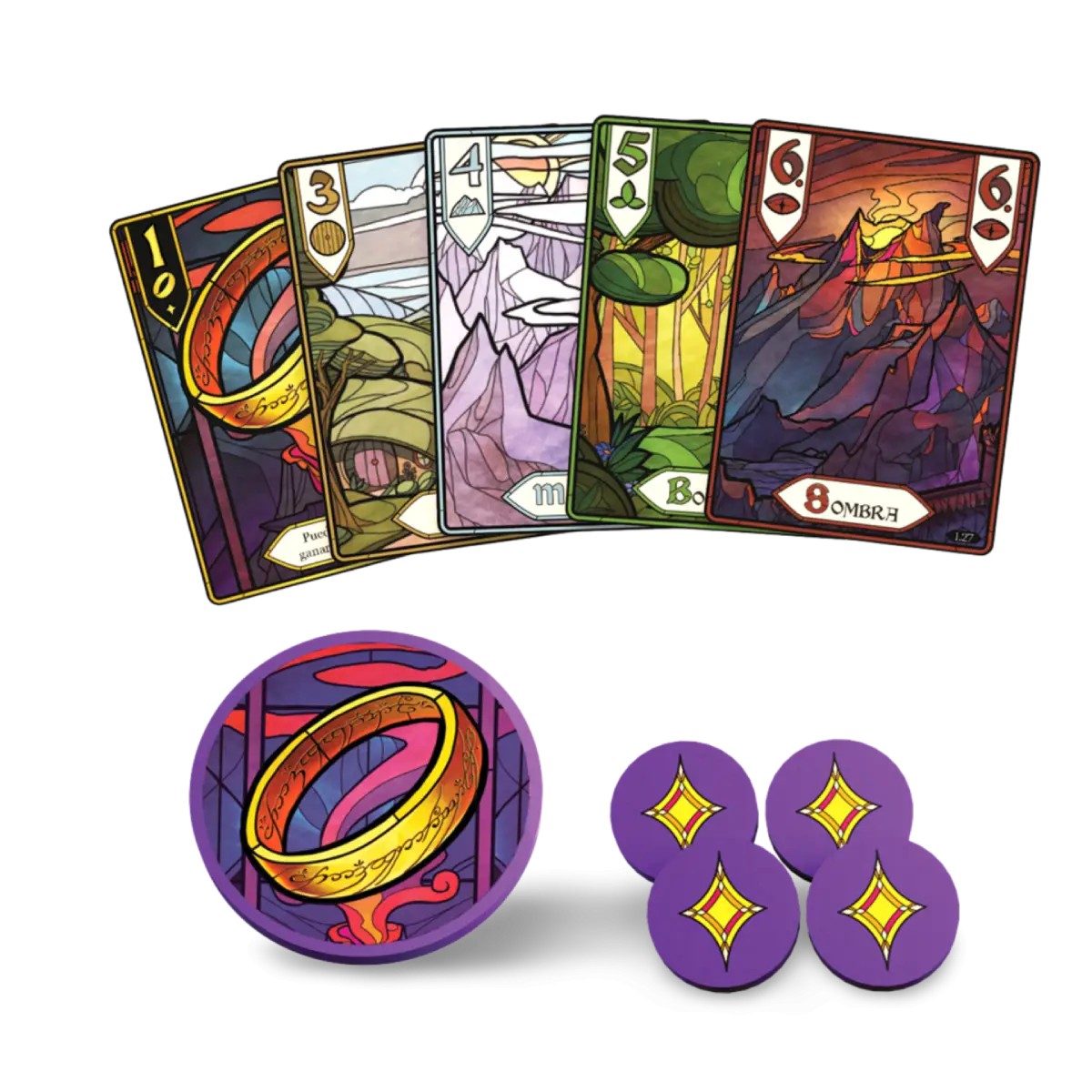 Lo que hace especial a este juego es cómo combina la mecánica clásica de las bazas con el universo de El Señor de los Anillos. Cada miembro de la comunidad tiene habilidades únicas, y las cartas están diseñadas para capturar la esencia de la Tierra Media. Ya sea que estés compitiendo por dominar cada baza o planeando cómo superar los obstáculos del viaje, este juego garantiza una experiencia inmersiva y estratégica. Perfecto para fanáticos de Tolkien y amantes de los juegos de cartas.
