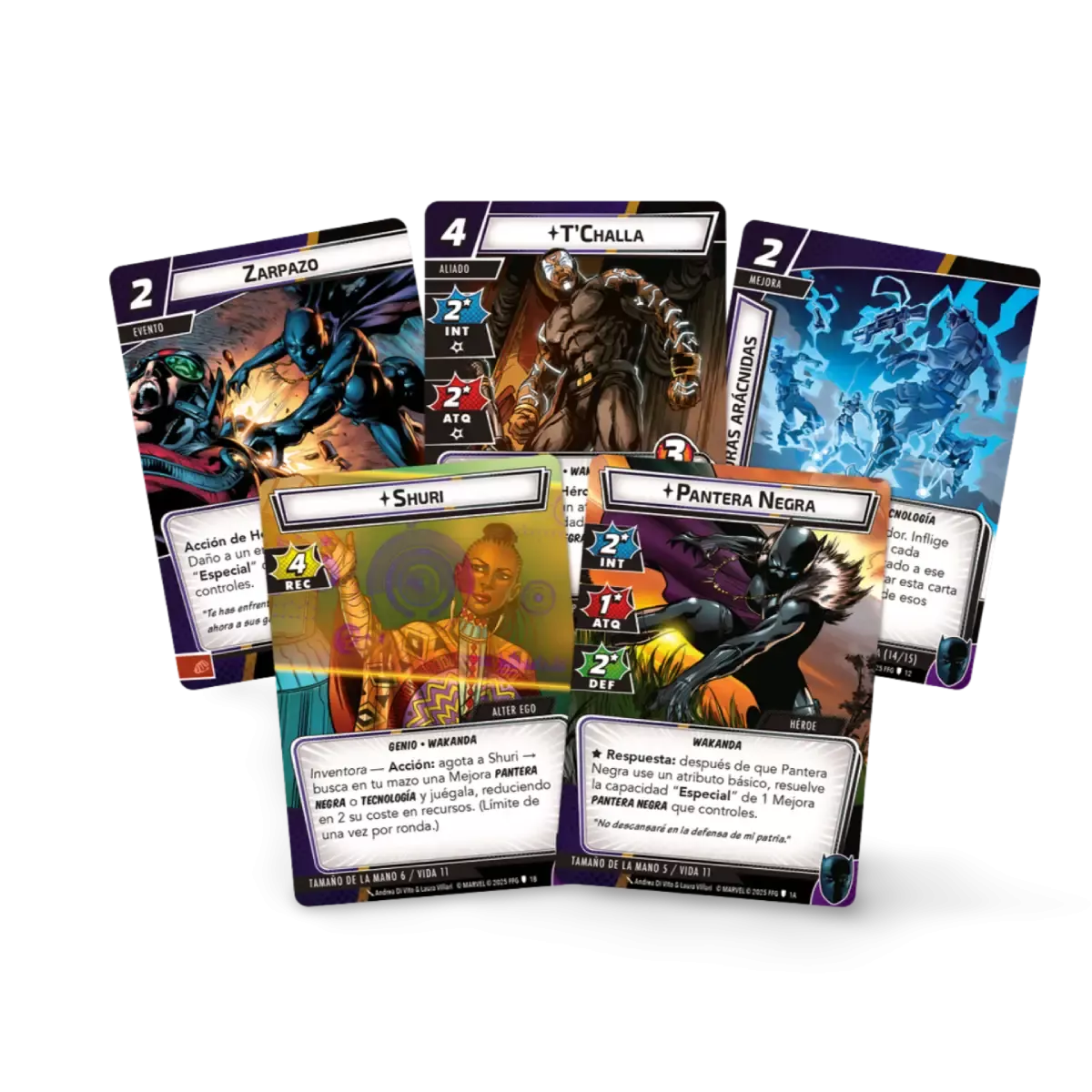 Lo que hace especial a Black Panther en Marvel Champions es su mecánica de mejoras wakandianas: cada pieza de su arsenal puede potenciarse en el momento adecuado, permitiéndote desencadenar el devastador Wakanda Forever! en el instante más oportuno. Con un mazo preconstruido listo para la batalla, esta expansión permite jugar con el icónico héroe directamente, aunque los jugadores más experimentados podrán personalizar su estrategia para aprovechar al máximo su estilo de combate versátil. Ya sea protegiendo a sus aliados o golpeando con furia real, T’Challa está listo para demostrar por qué es uno de los héroes más formidables del universo Marvel.