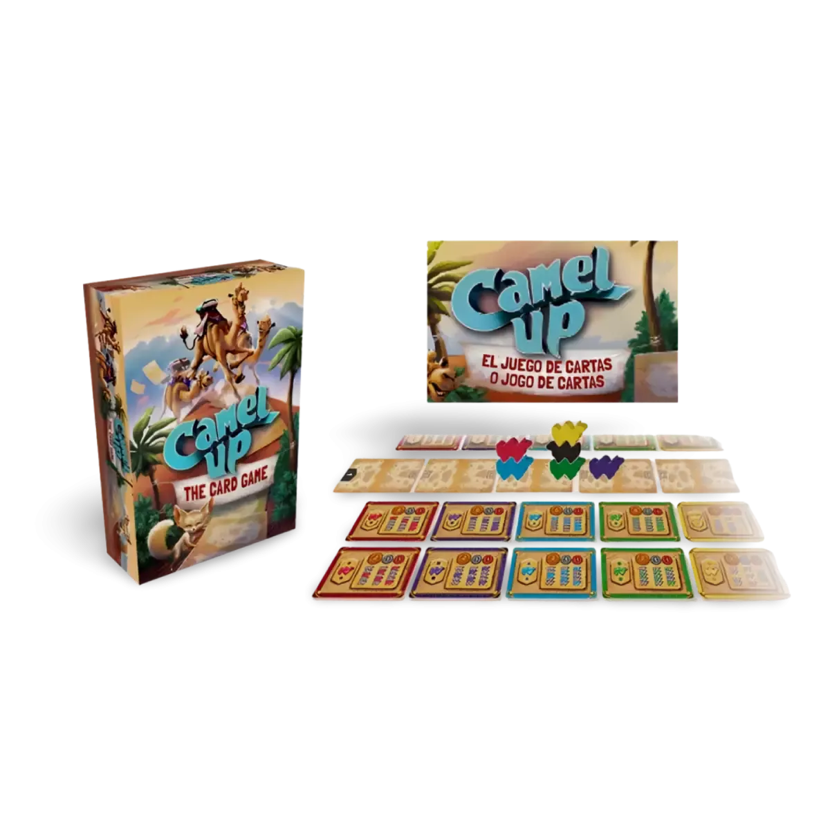 En Camel Up Cartas 2.0, te sumerges en el caótico mundo de las carreras de camellos, pero esta vez, ¡con cartas! Olvídate de las arenas del desierto y prepárate para una experiencia más compacta pero igual de emocionante. Cada jugador asume el papel de un apostador astuto, tratando de predecir qué camello cruzará primero la línea de meta. Pero, como en toda buena carrera de camellos, las cosas rara vez salen según lo planeado.