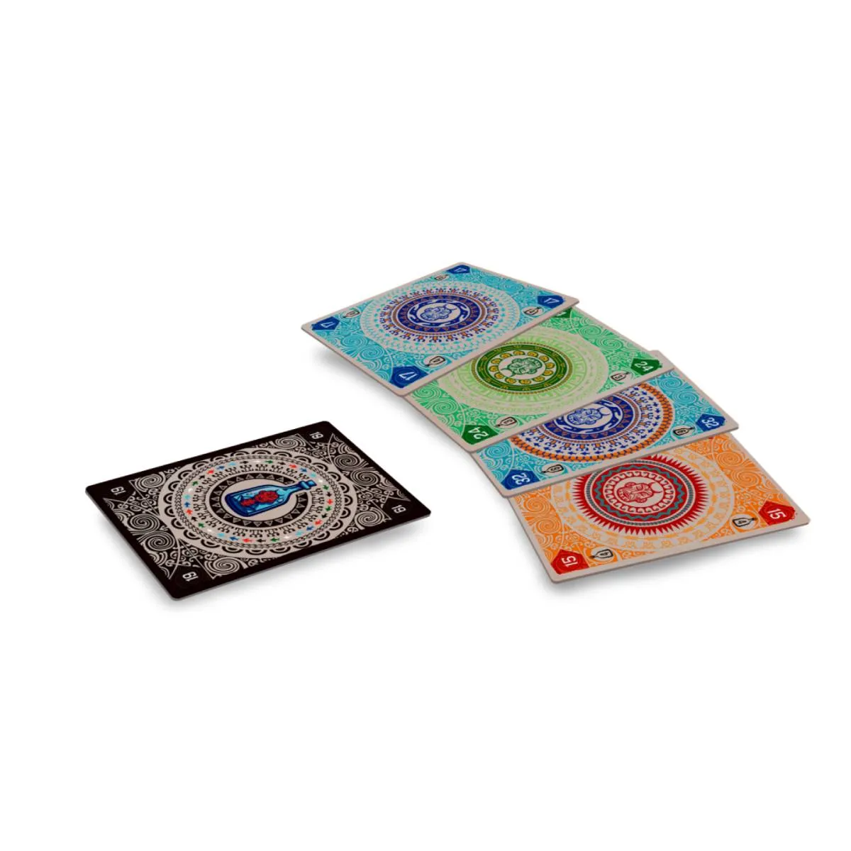El objetivo es acumular la mayor cantidad de puntos ganando bazas, pero cuidado: si terminas la ronda con la botella en tu poder, ¡perderás puntos en lugar de ganarlos! La clave está en utilizar cartas numeradas del 1 al 37, donde la carta número 19 establece el "precio" inicial de la botella. Durante las bazas, si juegas una carta con un valor inferior al precio actual de la botella y es la más alta de esas cartas, te llevas la baza y la botella, y el valor de tu carta se convierte en el nuevo precio de la botella. Si ninguna carta jugada es inferior al precio de la botella, la baza la gana la carta más alta, sin que la botella cambie de manos.