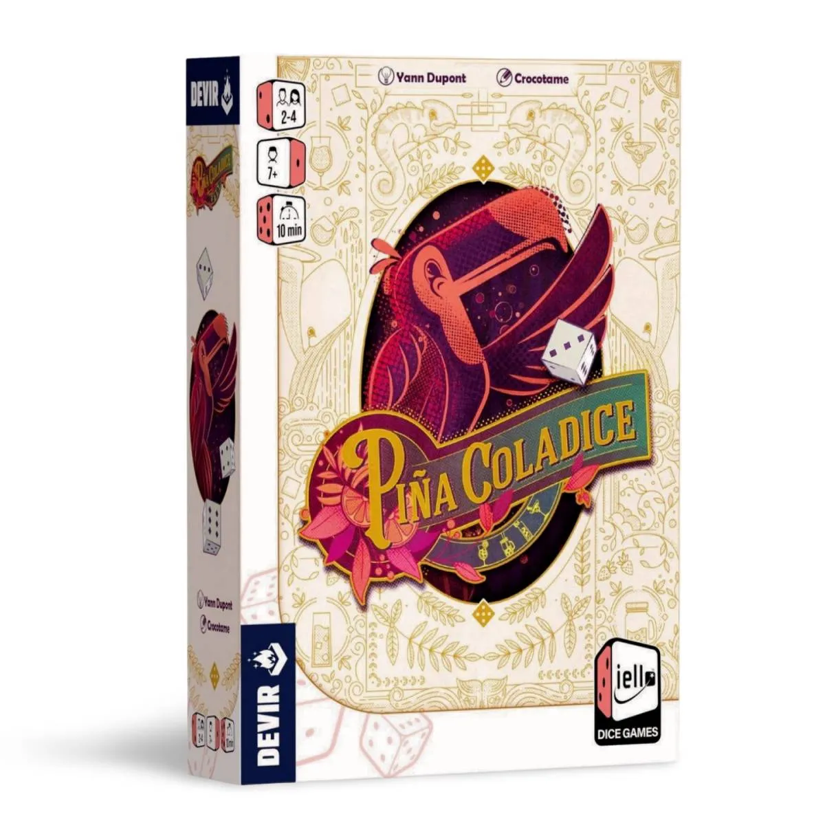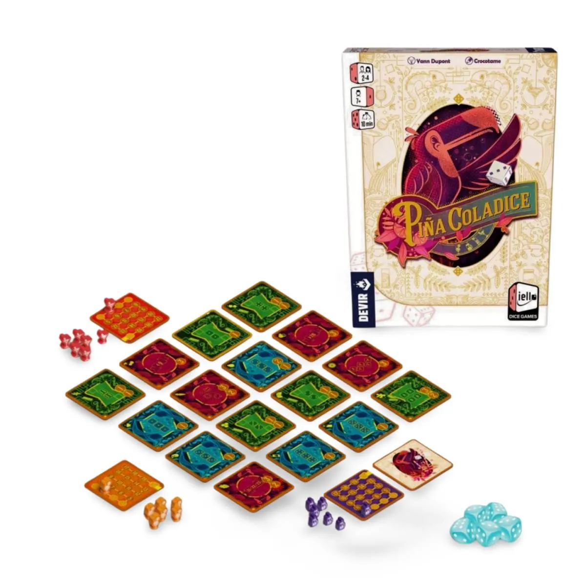 Piña Coladice, ese juego que nos transporta directamente a la barra de un chiringuito tropical, donde el sol brilla, las olas susurran y tú, querido jugador, te conviertes en un intrépido bartender dispuesto a demostrar tus habilidades cocteleras. Diseñado por Yann Dupont e ilustrado por Crocotame, este juego de dados para 2 a 4 jugadores, mayores de 8 años, promete partidas rápidas y refrescantes de unos 10 minutos.