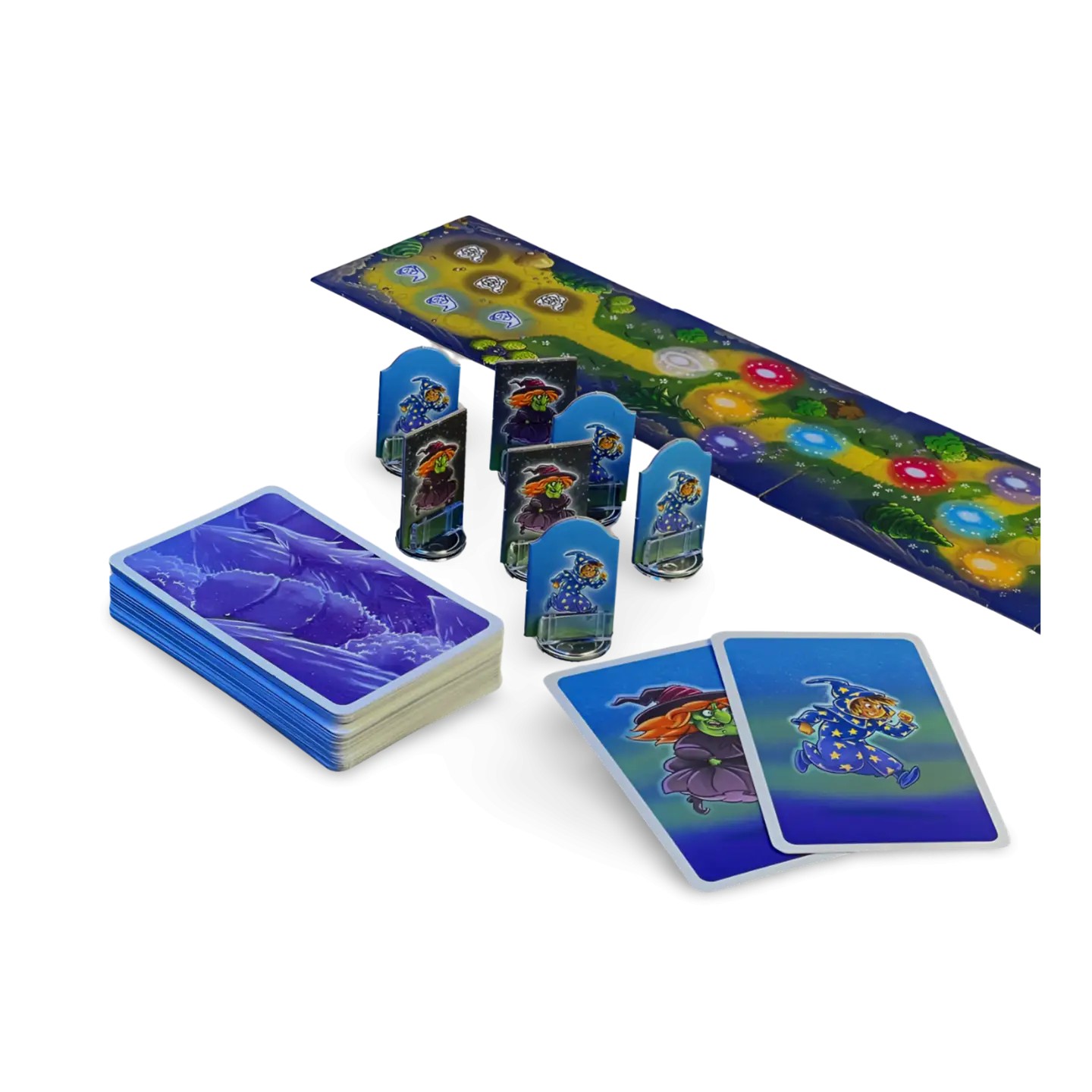 Los Magos del Bosque es un juego de cartas frenético y mágico donde te conviertes en un hechicero recolectando ingredientes para lanzar conjuros y ganar puntos. Cada turno es una carrera por conseguir las preciadas cartas que necesitas, mientras tus rivales conspiran para arrebatártelas o lanzar sus propios hechizos primero.