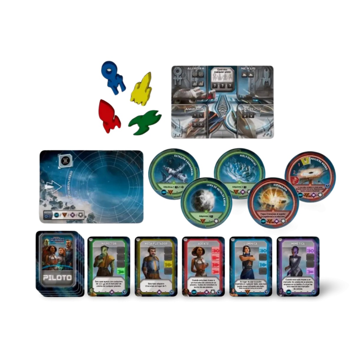 Pequeñas Grandes Galaxias: Espacio Profundo toma la emocionante conquista espacial del juego base y la empuja a un nuevo nivel con misiones secretas, nuevos planetas y decisiones aún más estratégicas. En esta expansión, no solo competirás por colonizar planetas, sino también por cumplir objetivos que pueden darte puntos extra y cambiar el curso de la partida.