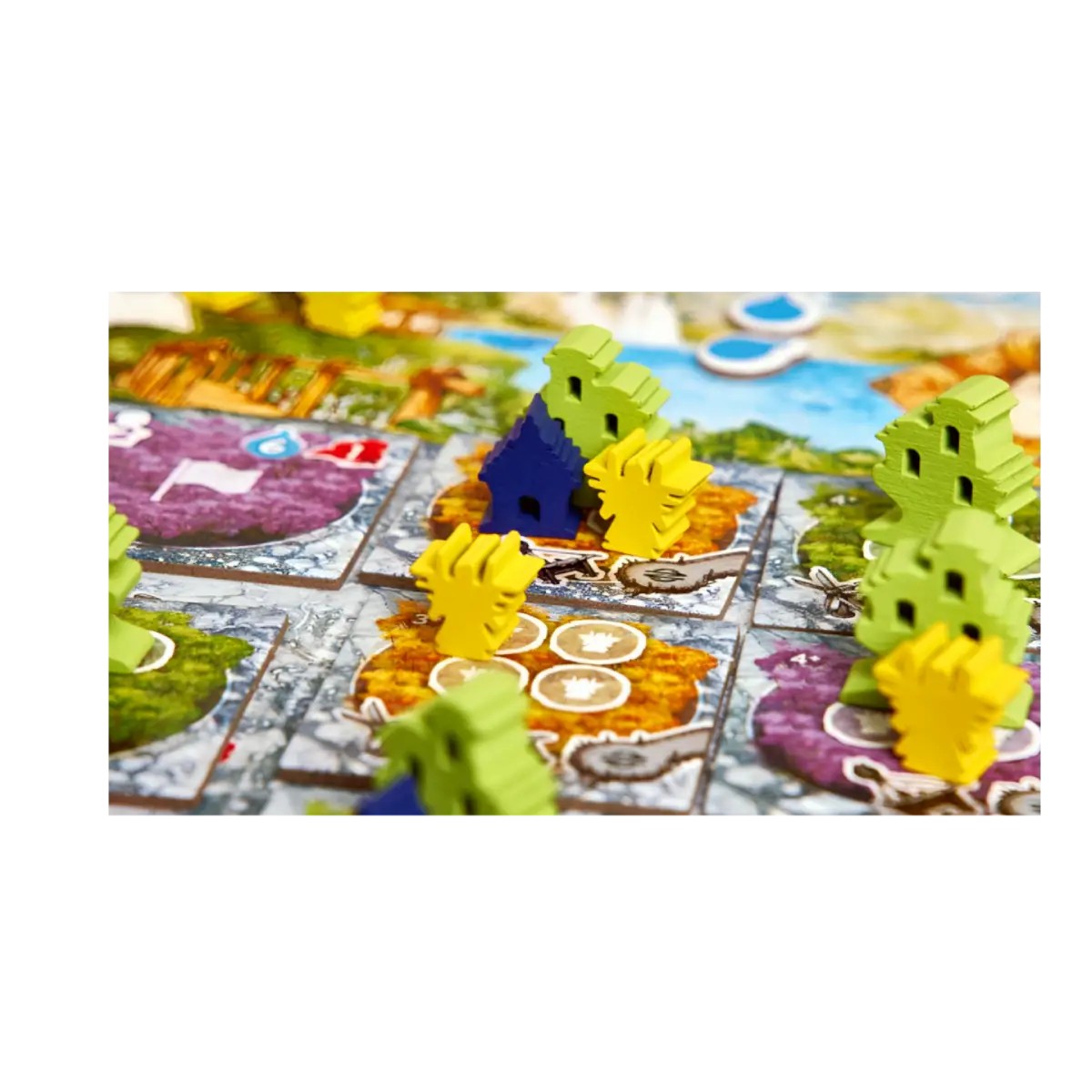 La magia del juego está en su mecánica única: las acciones que puedes realizar dependen de los dorsos de las cartas que sostienen tus vecinos. Así que, mientras tú piensas en limpiar contaminación o plantar árboles, ellos, sin darse cuenta, podrían estar decidiendo tu destino. Cada turno es una mezcla de estrategia, observación y un poquito de suerte mientras intentas construir aldeas y templos antes que los demás.