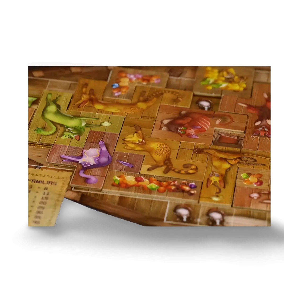 La Isla de los Gatos es un juego de colocación de piezas, estrategia y, por supuesto, adorables felinos. Tu objetivo es salvar a la mayor cantidad de gatos posible de una isla antes de que un malvado pirata llegue a destruirla. Cada jugador tiene un barco que intentará llenar con gatos poliminos (piezas estilo Tetris), ajustándolos estratégicamente para cubrir espacios, obtener puntos y cumplir objetivos secretos. El juego se divide en varias fases: primero, pescas peces, la moneda del juego, y los usas para comprar cartas que te permitirán rescatar gatos, jugar poderes especiales o desbloquear objetivos personales. Luego, colocas los gatos rescatados en tu barco, encajándolos con cuidado para formar familias de colores, cubrir tesoros y evitar espacios vacíos que restarán puntos al final. Además, puedes rescatar oshax (gatos raros) y recoger pergaminos que otorgan puntos extra por cumplir requisitos específicos, como conectar áreas o rodear ciertas zonas. ¿La clave? Gestionar tus recursos y decisiones mientras peleas por los gatos más valiosos antes de que tus oponentes los reclamen. La Isla de los Gatos es una delicia de decisiones estratégicas, una carrera contrarreloj por salvar felinos y una experiencia tan adorable como desafiante.