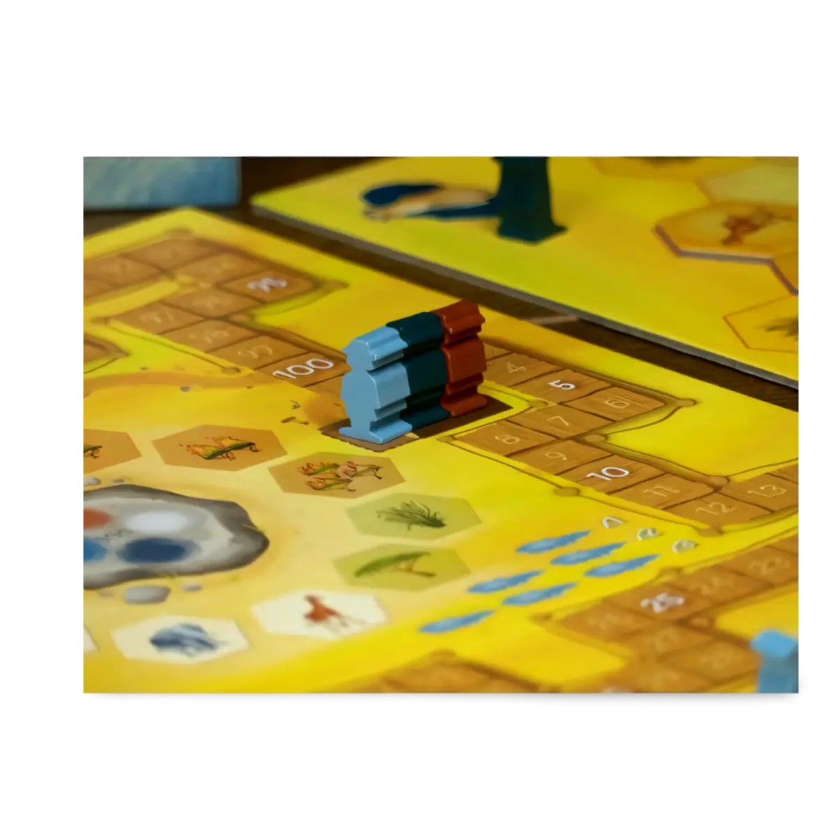 El truco está en que las losetas que coloques ahora deben alinearse con tus planes a largo plazo, ya que al final del juego puntuarás por grupos de animales conectados, acceso a fuentes de agua y la presencia de árboles que hagan que tu parque sea más atractivo. Pero claro, mientras tú intentas crear la sabana perfecta, tus oponentes, sin quererlo, pueden obligarte a mover losetas en momentos totalmente inconvenientes, añadiendo una capa de tensión estratégica.