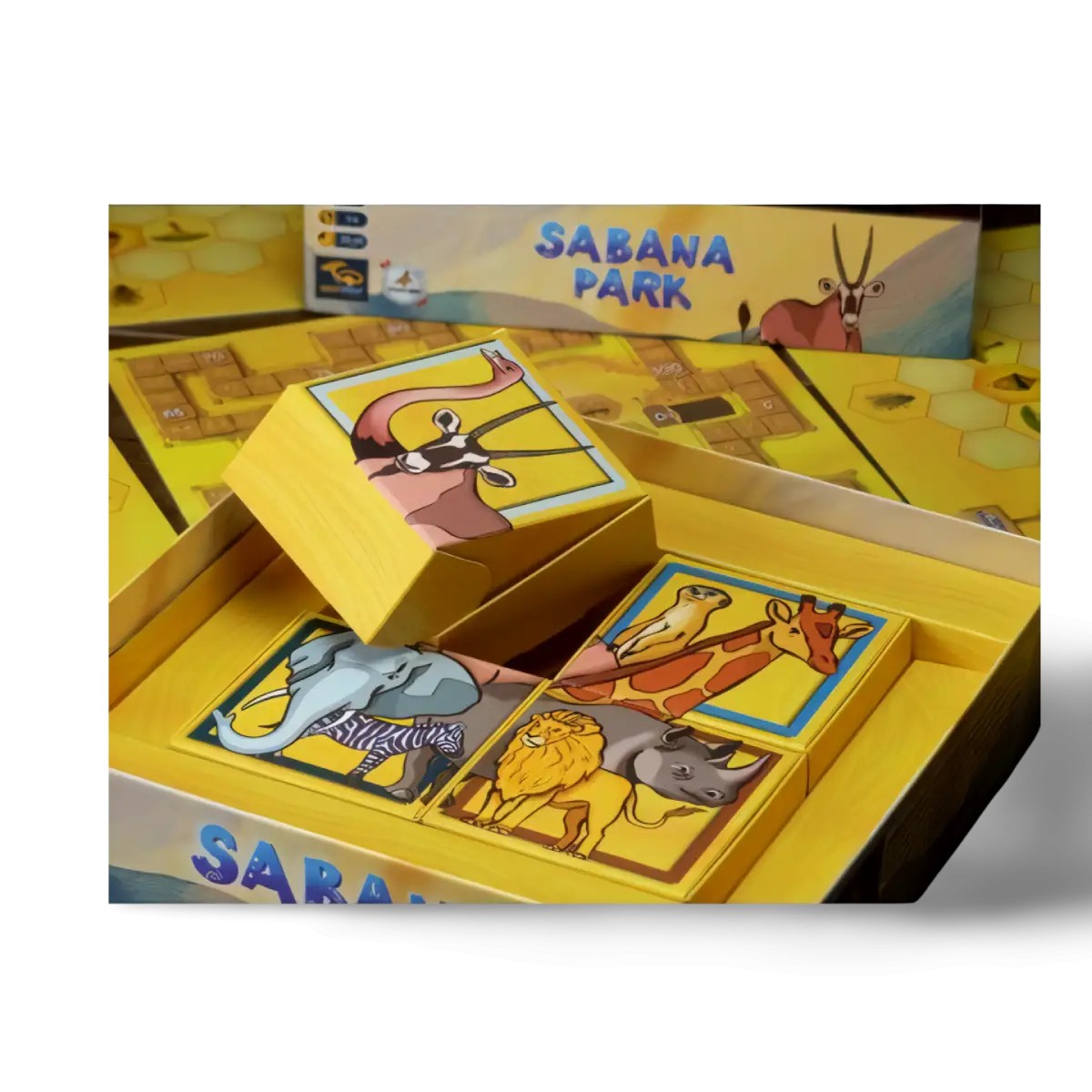 Sabana Park es un juego estratégico disfrazado de un encantador paseo por la sabana africana, donde los jugadores compiten por organizar el mejor parque natural lleno de animales. Pero no te dejes engañar por los elefantes y jirafas adorables: este juego es una batalla silenciosa de planificación meticulosa y caos inesperado. Comienzas con un tablero lleno de losetas de animales distribuidas al azar, y en cada turno, un jugador elige un tipo de animal que todos deben mover a un nuevo espacio en sus tableros.