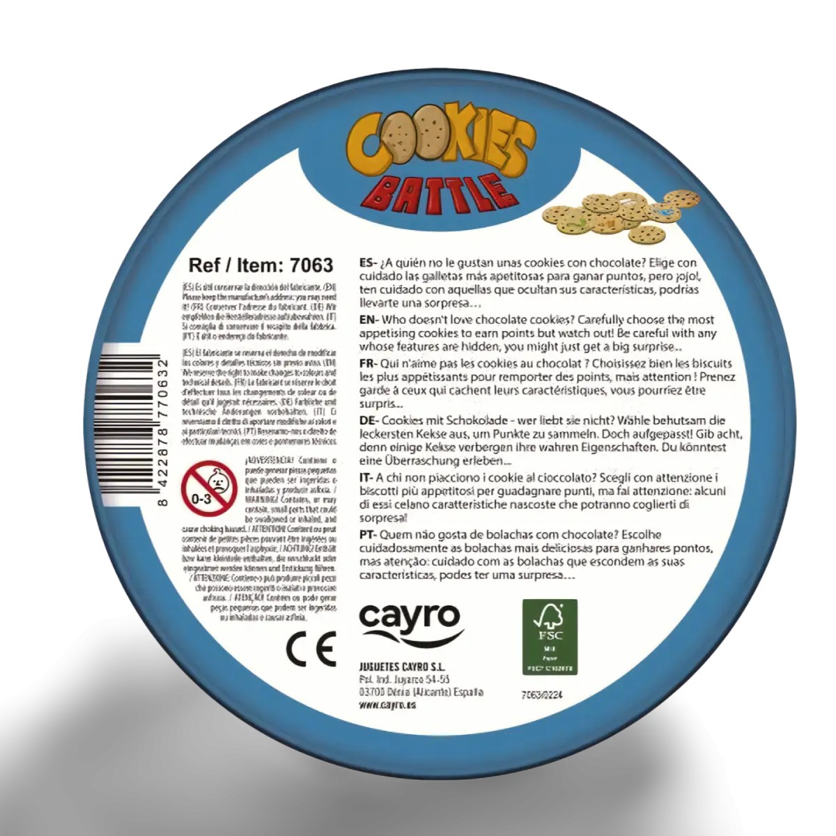 El juego termina cuando no quedan más galletas en la caja y el jugador con más puntos gana. Fácil, ¿no? Bueno, no cuando tus amigos conspiran para sabotearte con una cadena de malas decisiones galletiles. Con partidas rápidas, reglas sencillas y una caja compacta perfecta para llevar a cualquier sitio, Cookies Battle es una explosión de risas, suerte y una pizca de mala leche. Así que, shut up, sit down, ¡y que empiece la guerra de galletas!