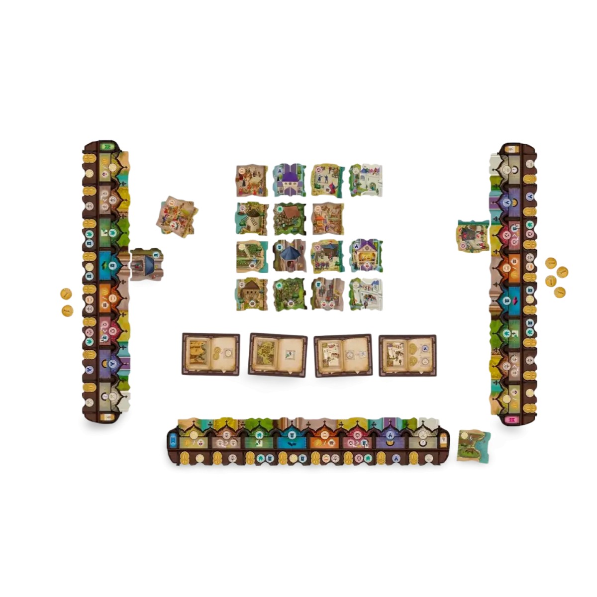 Middle Ages es un juego estratégico donde los jugadores construyen y gestionan un feudo medieval, colocando losetas de terrenos y edificios para ganar influencia. Con decisiones tácticas en cada turno y múltiples formas de optimizar tu territorio, ofrece partidas rápidas llenas de planificación y caos competitivo.