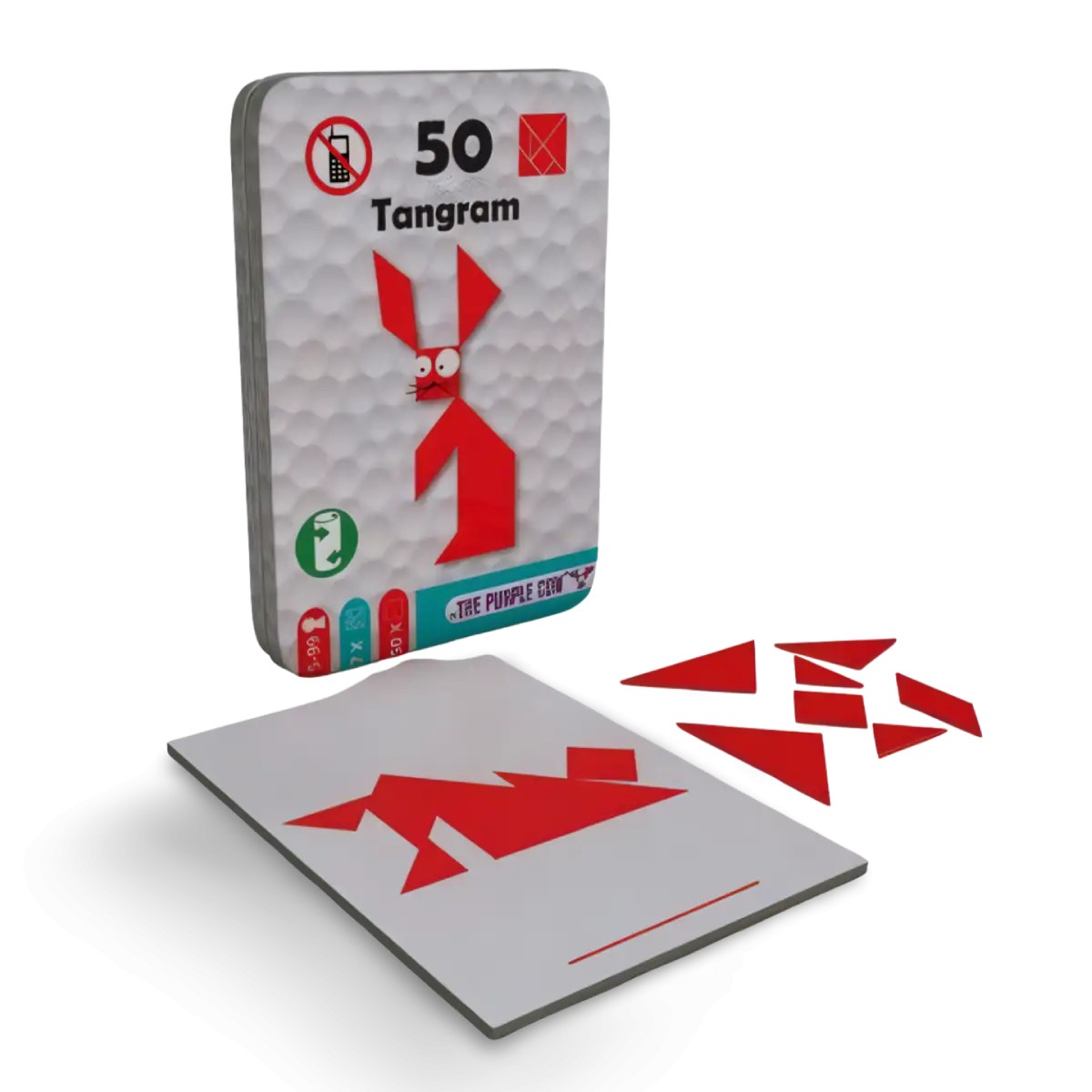 50 Tangram - TO GO es un rompecabezas magnético donde debes usar siete piezas geométricas para resolver 50 desafíos que van desde animales hasta figuras abstractas. Compacto, portátil y adictivo, es perfecto para ejercitar tu mente mientras disfrutas de un reto geométrico en cualquier lugar.