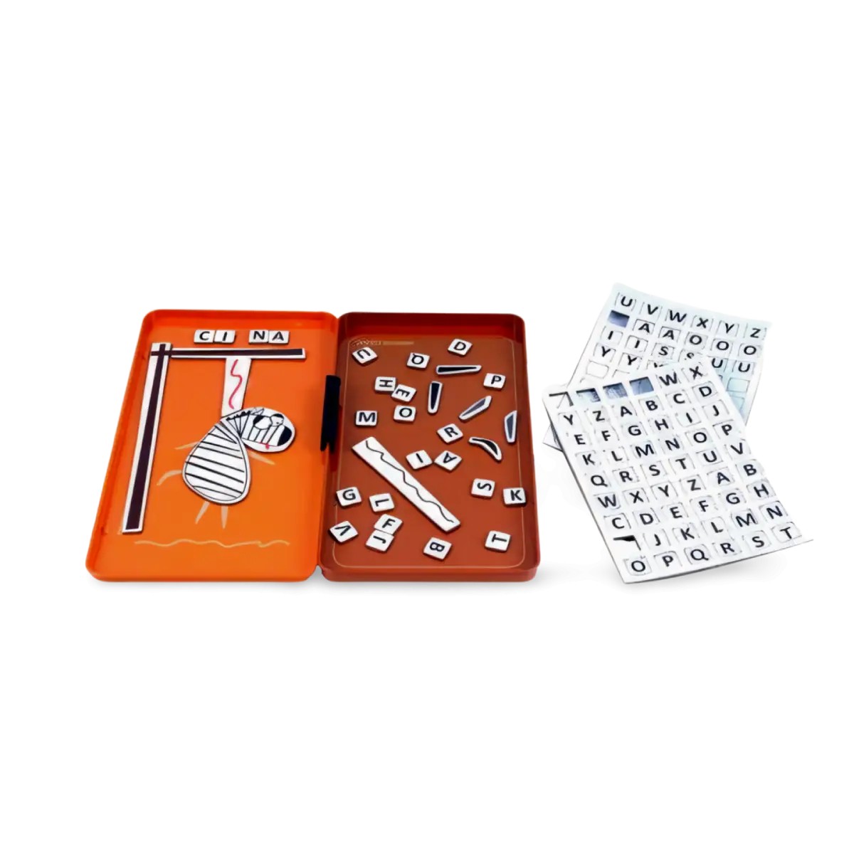 El Ahorcado - TO GO es una versión portátil y magnética del clásico juego de adivinanzas donde un jugador piensa en una palabra y el otro intenta descubrirla antes de completar el dibujo del ahorcado. Compacto y perfecto para viajes, combina diversión y desafío en partidas rápidas en cualquier lugar.