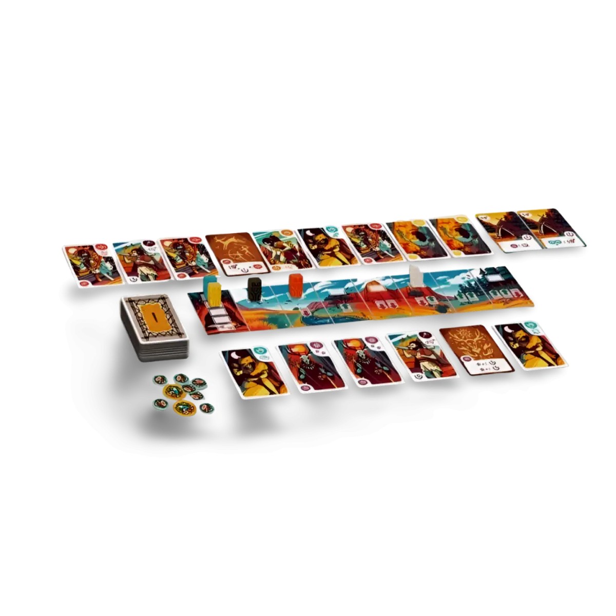 El núcleo del juego gira en torno a la colocación de tu tótem en el indicador de ofrenda, una mecánica que define el orden en el que los jugadores seleccionan cartas de personajes y edificios. Puedes elegir jugar antes y asegurar cartas más potentes pero menos numerosas, o esperar y recolectar más cartas con efectos menos impactantes. Cada decisión cuenta, ya que estas cartas te permitirán asignar roles específicos a los miembros de tu tribu, construir estructuras especializadas y prepararte para los eventos que moldearán tu destino.
