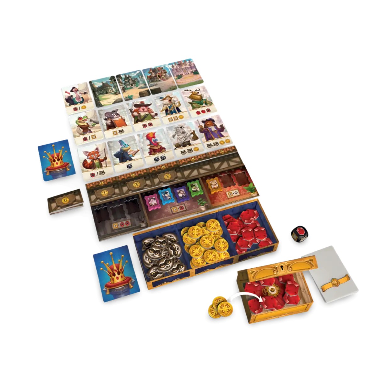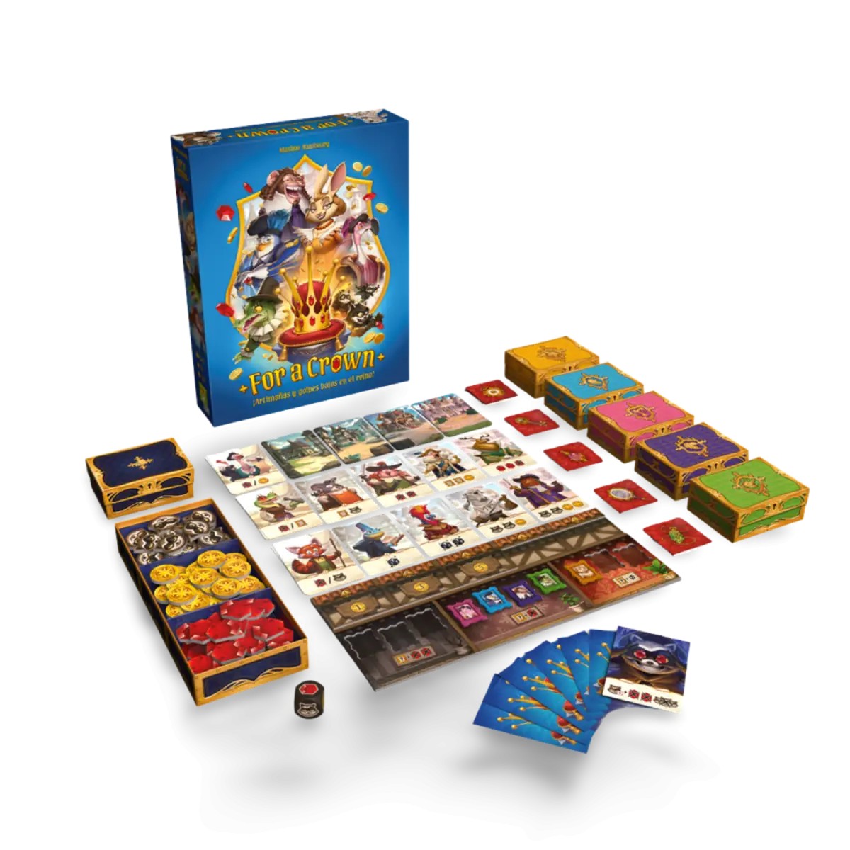 For a Crown es una lucha épice donde la estrategia, la traición y el momento oportuno definen quién se alza con la primera corona de un reino unificado. En este innovador juego de mecánicas únicas, cada partida es una lucha encarnizada entre familias rivales que reclutan mercenarios, sortean eventos impredecibles y manipulan sus mazos comunes en busca de la gloria.