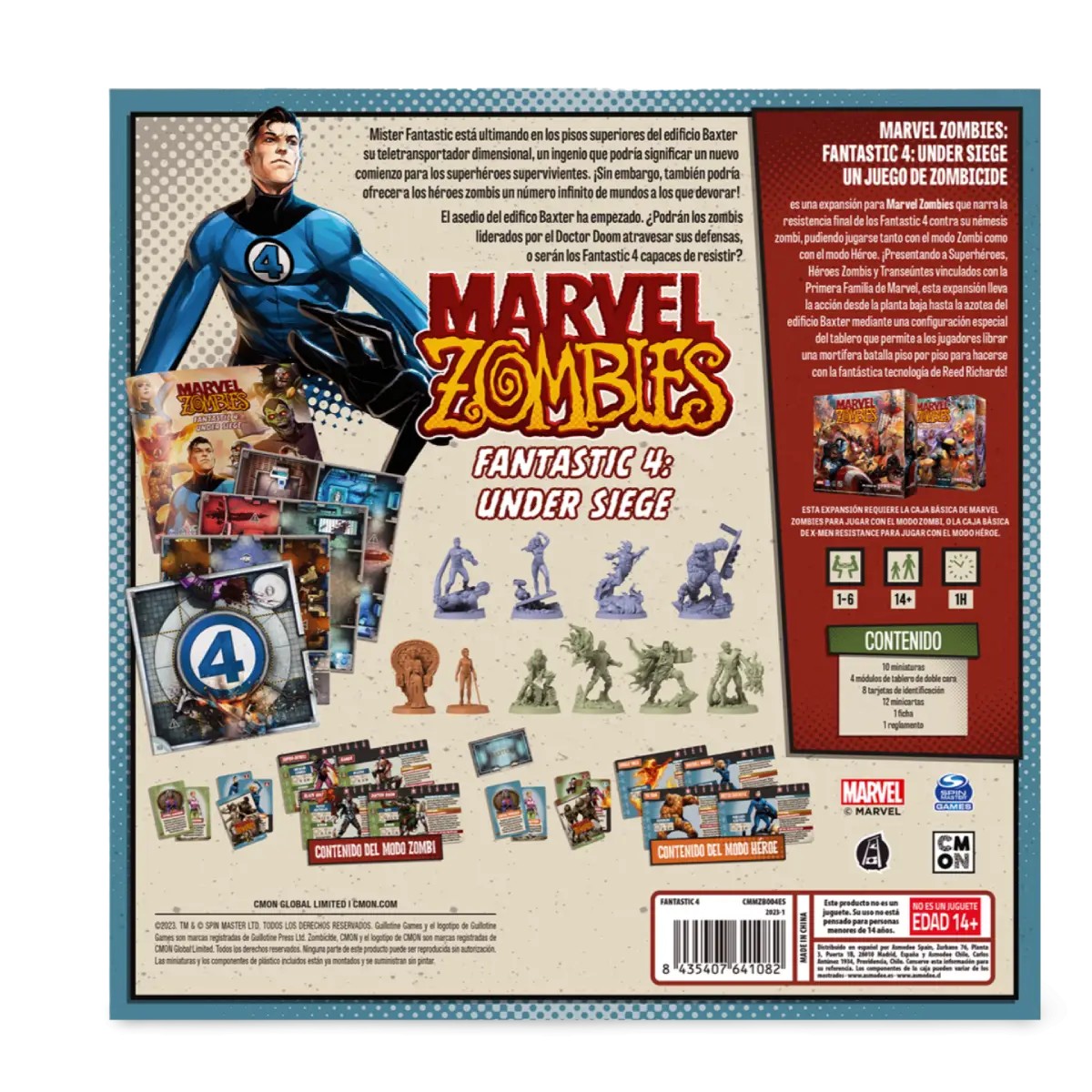 Marvel Zombies: Fantastic Four - Under Siege te sumerge en una aterradora batalla dentro del icónico edificio Baxter, donde los héroes más brillantes de Marvel enfrentan la amenaza zombi. En esta expansión para Marvel Zombies, los Cuatro Fantásticos deben usar su ingenio, poderes únicos y trabajo en equipo para resistir la embestida de hordas infectadas, o unirse a las filas de los zombis y desatar el caos.