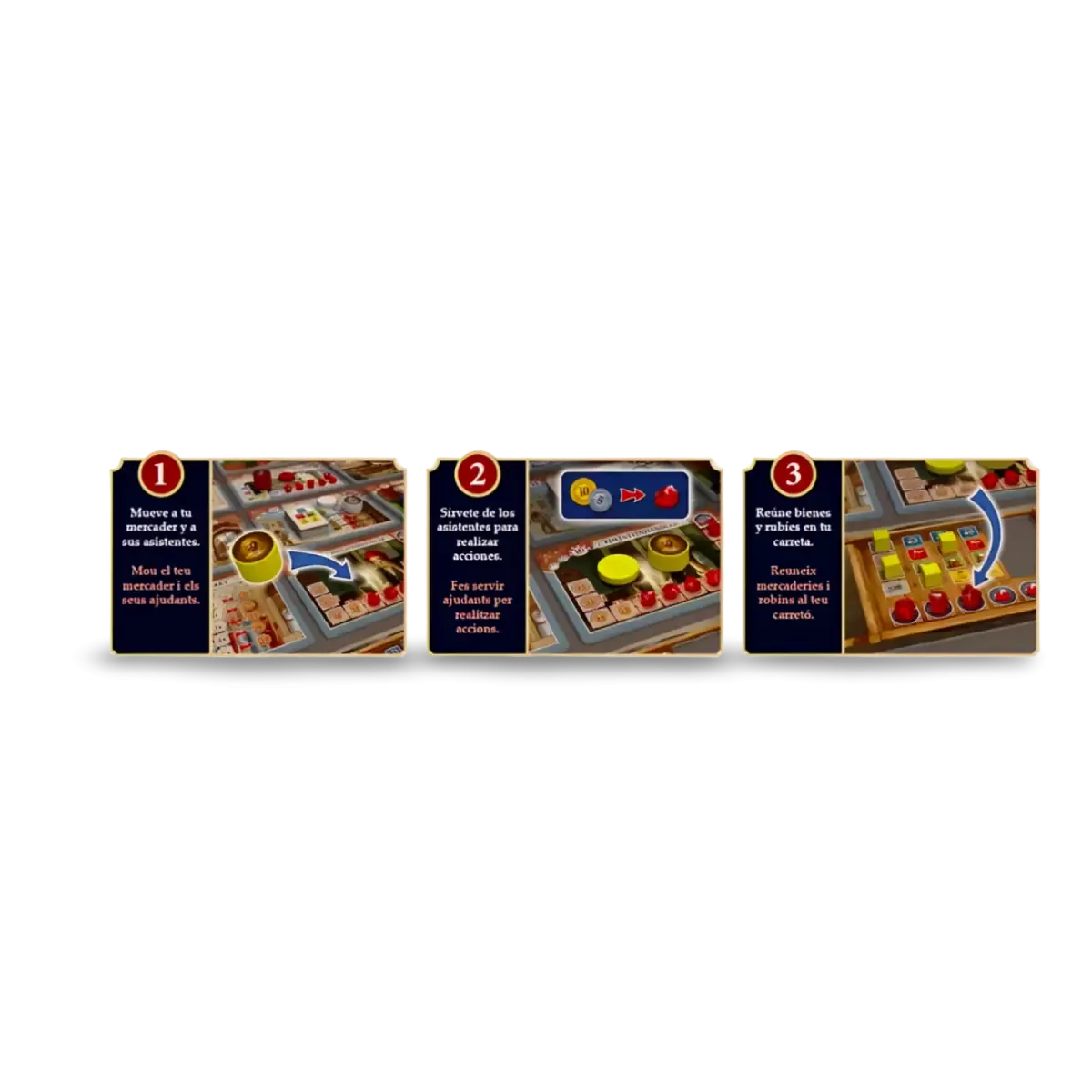 En Istanbul Big Box: Segunda Edición, te sumerges en el bullicioso bazar de Estambul, donde los comerciantes y sus asistentes recorren los estrechos callejones con la esperanza de superar a sus competidores. La organización es clave: las carretillas deben llenarse con mercancías en los almacenes y luego ser transportadas rápidamente a diversos destinos. El objetivo es ser el primer comerciante en recolectar una cantidad específica de rubíes. Esta edición integral incluye el juego base y dos expansiones: Mocha & Baksheesh y Letters & Seals, ofreciendo una experiencia de juego enriquecida y una rejugabilidad estratégica impresionante. Además, esta combinación permite un mercado de tamaño épico de 5 x 5 losetas.