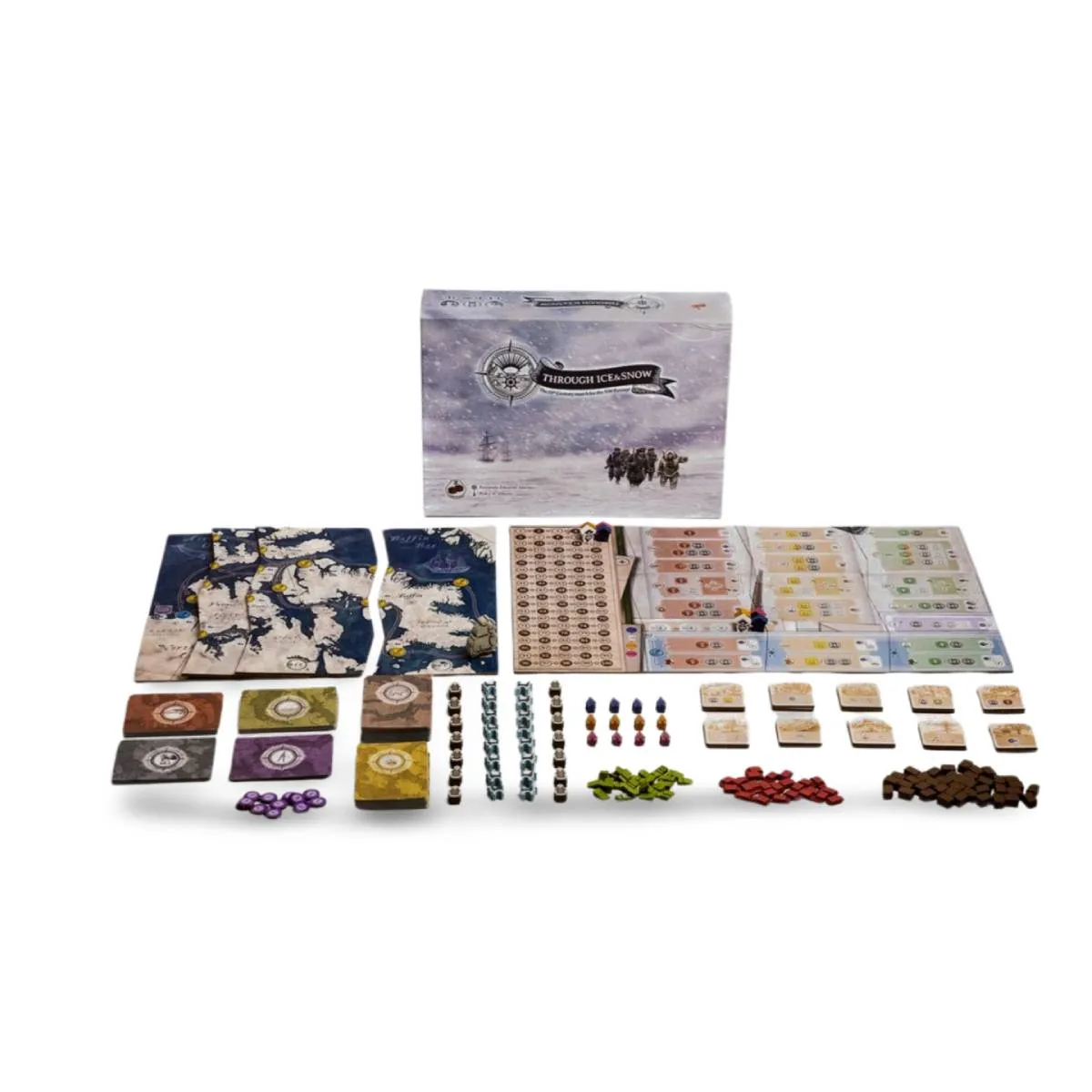 Through Ice and Snow es un juego para 1 a 4 jugadores donde lideras una expedición ártica del siglo XIX en busca del Paso del Noroeste. Gestiona recursos, mantén la moral de tu tripulación y enfrenta los desafíos del Ártico en partidas de 45 a 90 minutos.