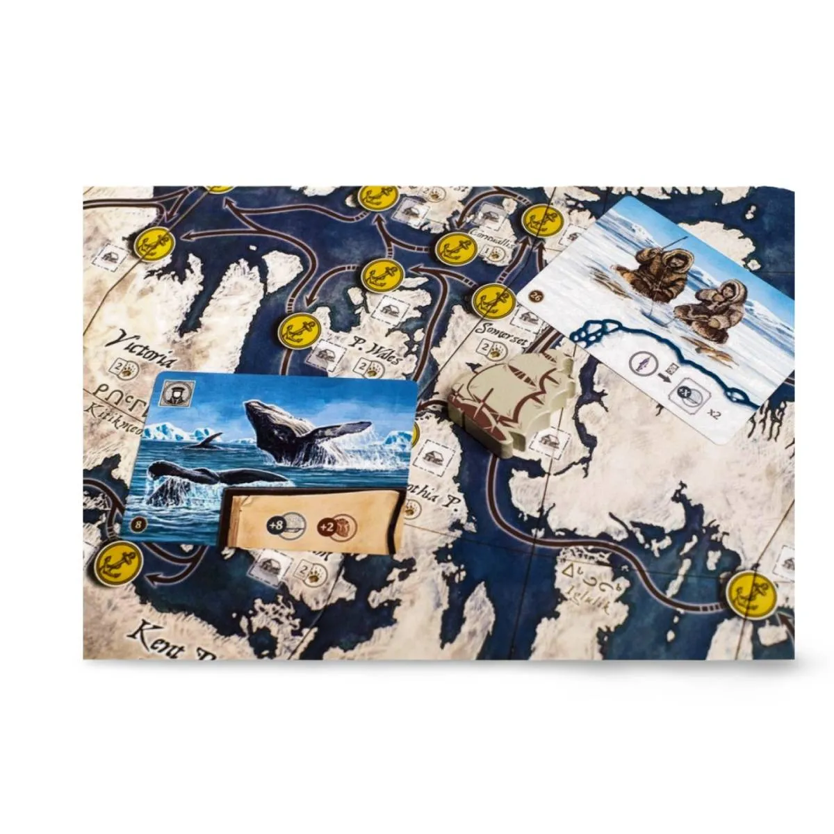 Cada jugador controla a un capitán y su equipo, asignando oficiales y marineros a diversas tareas: desde cazar para llenar la despensa hasta negociar con los inuit locales o mejorar tu barco para resistir las inclemencias del Ártico. Pero cuidado, porque el clima no siempre estará de tu lado, y una tormenta inesperada podría hacer que tus planes se hundan más rápido que un ancla mal atada.