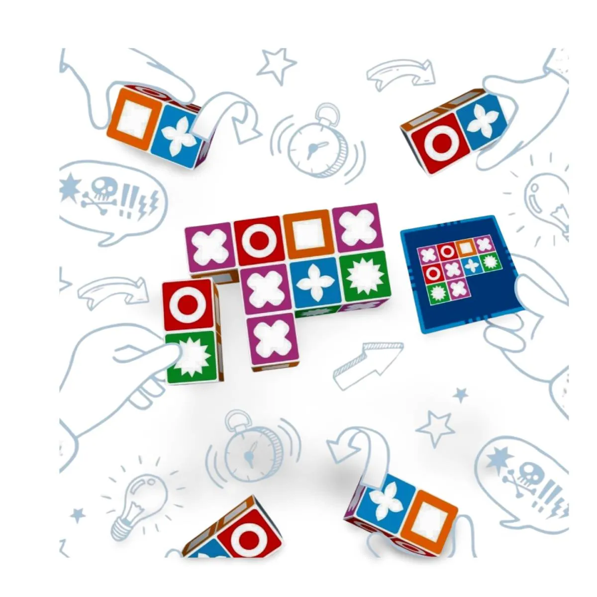 En Match Madness, te sumerges en un frenético desafío de percepción y velocidad. Cada jugador recibe un conjunto de cinco bloques, cada uno adornado con diferentes patrones geométricos. Al voltear una carta de patrón, comienza la carrera: debes ser el primero en replicar exactamente la configuración mostrada utilizando tus bloques. Suena sencillo, ¿verdad? Pero a medida que avanzas, los patrones se vuelven más intrincados y tus oponentes más rápidos. Este galardonado juego, diseñado para 1 a 4 jugadores a partir de 7 años, ofrece partidas de aproximadamente 20 minutos llenas de tensión y risas. Con 60 cartas de desafío divididas en cinco niveles de dificultad, Match Madness garantiza una rejugabilidad que pondrá a prueba tu agudeza visual y rapidez mental una y otra vez.
