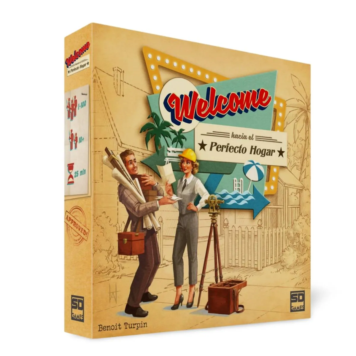 Welcome Hacia el Perfecto Hogar es un juego en el que, siendo arquitecto en la era del Baby Boom, compites diseñando parcelas en tres calles mediante decisiones simultáneas con las mismas cartas. ¡Combina inteligentemente los números y efectos para crear el proyecto urbano ideal!