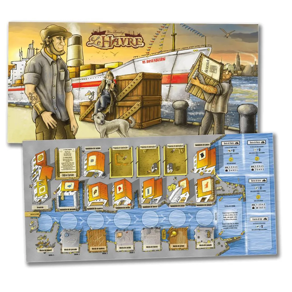 Le Havre arranca con un muelle lleno de barcos que traen alimentos, madera, ladrillos y más, mientras los edificios adyacentes ofrecen acciones de transformación y venta. Cada turno debes decidir si cargar un buque para obtener monedas instantáneas, invertir en infraestructura para mejorar tu rendimiento a largo plazo o alimentar a tu población antes de que el hambre ralentice tus proyectos. La mecánica de rondas alternas y pagos de mantenimiento obliga a planificar con antelación cada movimiento, aprovechando puentes, astilleros y almacenes para optimizar cadenas de producción. Con un mercado fluctuante que refleja la demanda de la ciudad, las ofertas pueden disparar tus ingresos o dejarte con excedentes inútiles, desafiándote a encontrar el equilibrio perfecto entre construcción y comercio. La intensidad crece a medida que se agotan los barcos disponibles y los jugadores compiten por reclamar los edificios más lucrativos, convirtiendo cada partida en un rompecabezas económico donde sólo el gestor más perspicaz alzará la victoria en este pulso portuario.
