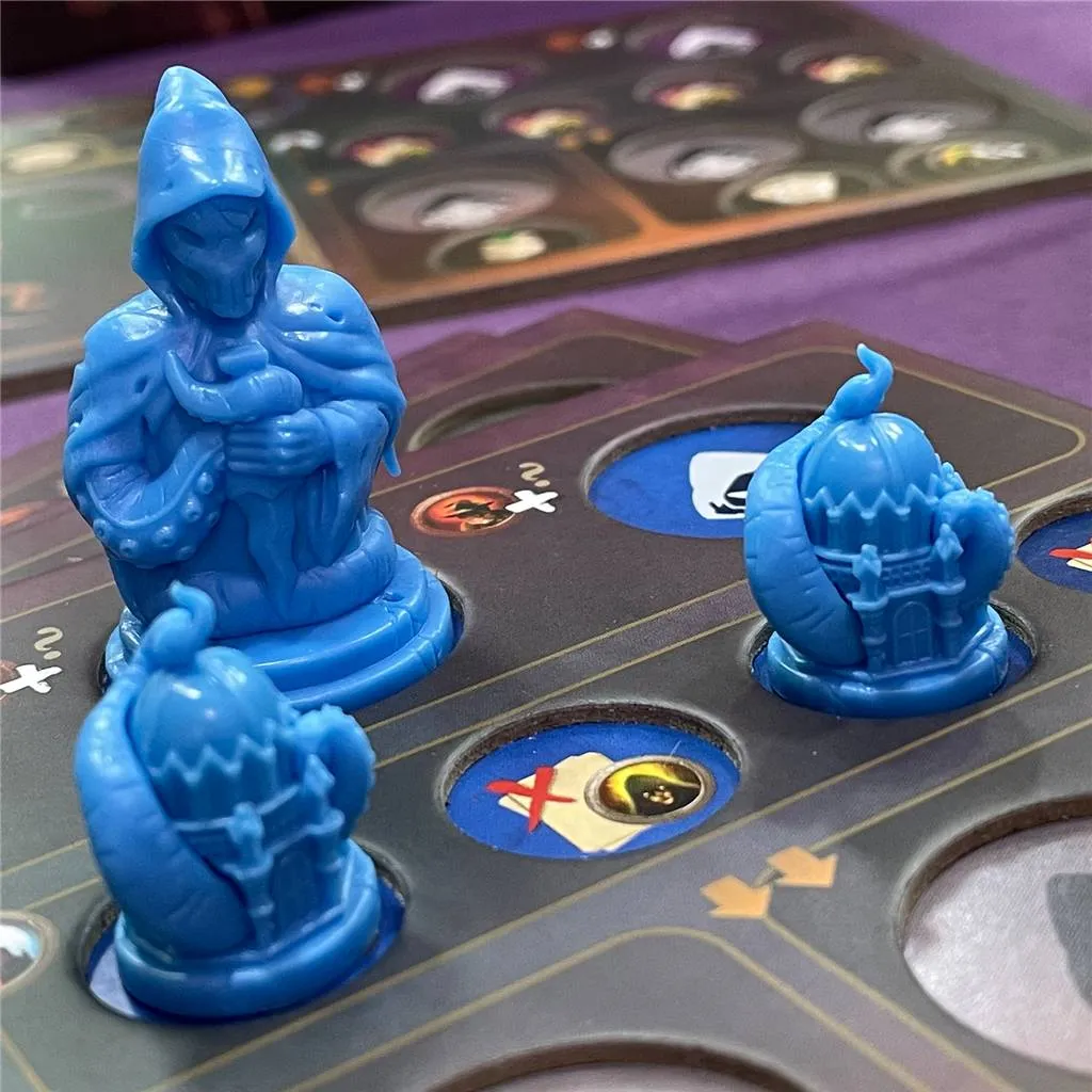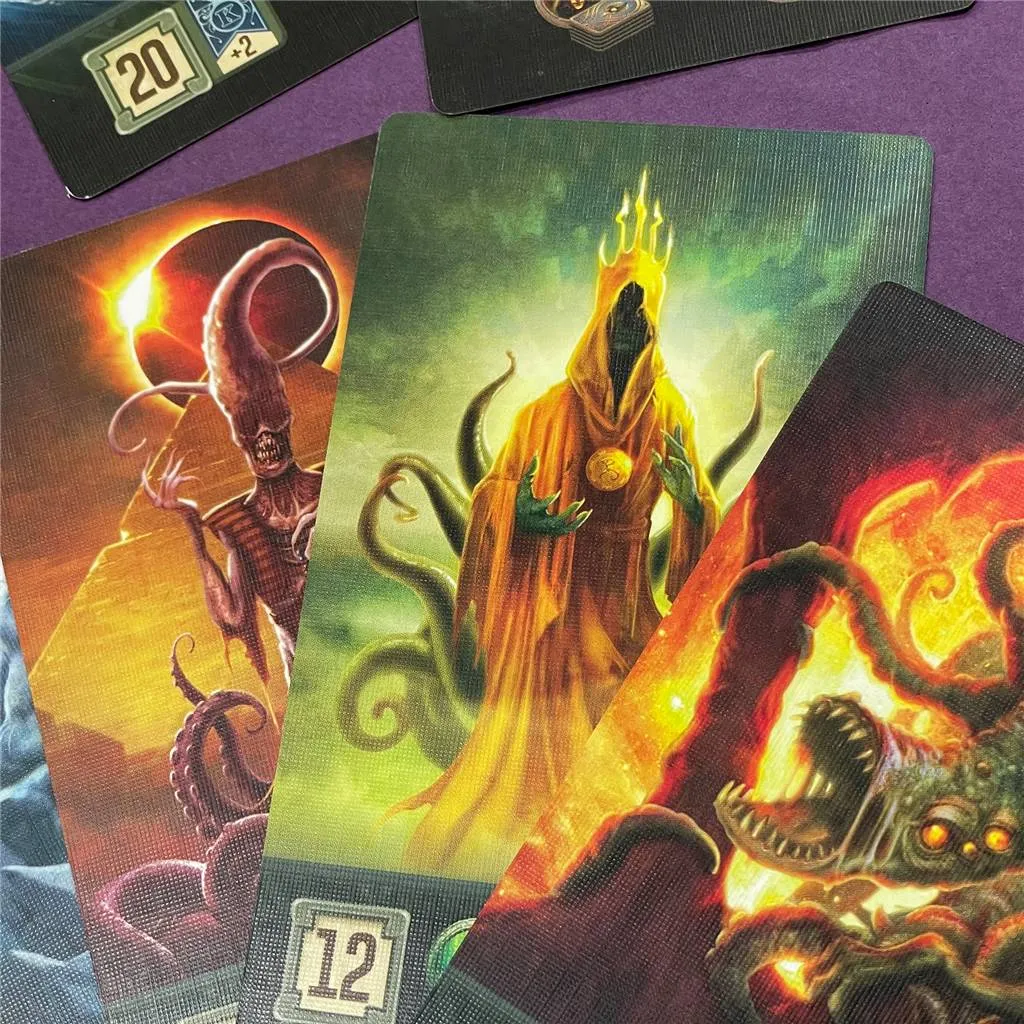 La mecánica principal combina colocación de trabajadores en un tablero reversible con gestión de mano de cartas de culto y evento⁴. Al acumular suficiente poder, activas el rito de invocación, pero debes vigilar la presencia de los investigadores: si llegan a tu culto pueden arruinar tus esfuerzos y restarte recursos⁵. La partida termina cuando un jugador completa su ritual de llamado o cuando se agotan los investigadores en el mazo, y quien haya sentado las bases más sólidas de su culto se alza con la victoria.